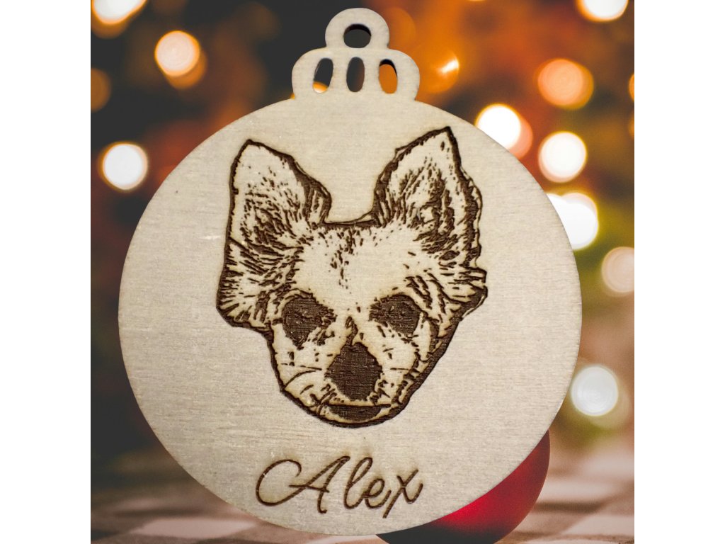 Objevte kouzlo osobní vánoční výzdoby s naší dřevěnou vánoční baňkou s portrétem vašeho zvířete. Každý kus je ručně vyráběný v Ostravě a precizně gravírovaný podle fotografie vašeho mazlíčka, takže vznikne originální dekorace, která nebude mít obdoby.