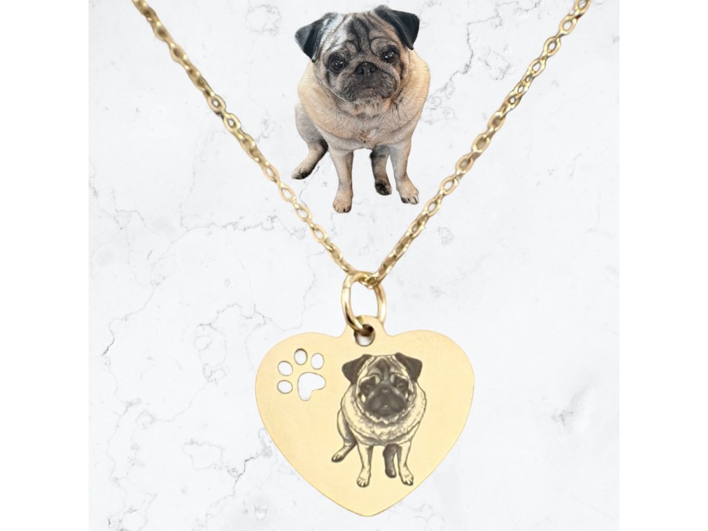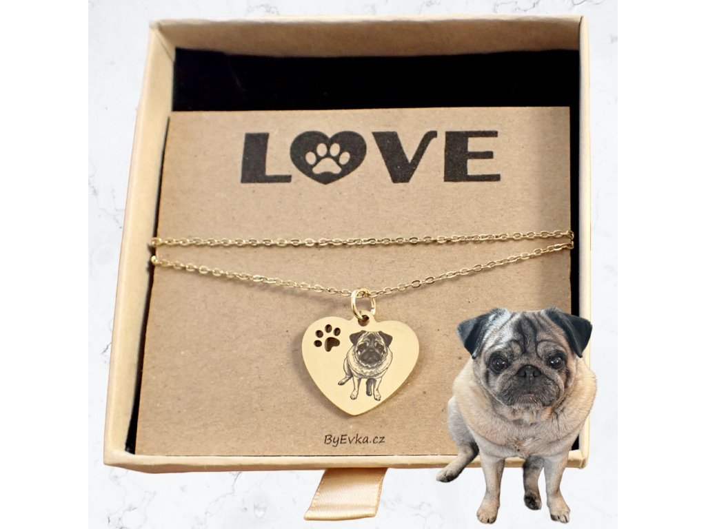 Zlatý řetízek s přívěskem – Srdce s tlapkou s gravírováním vašeho mazlíčka