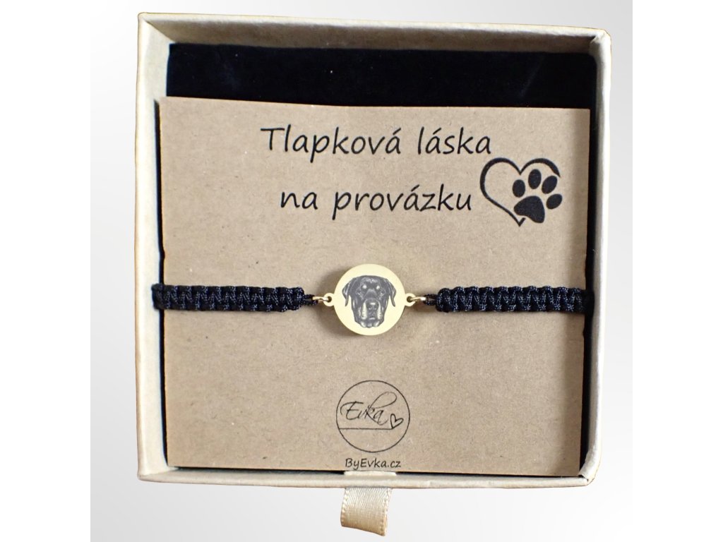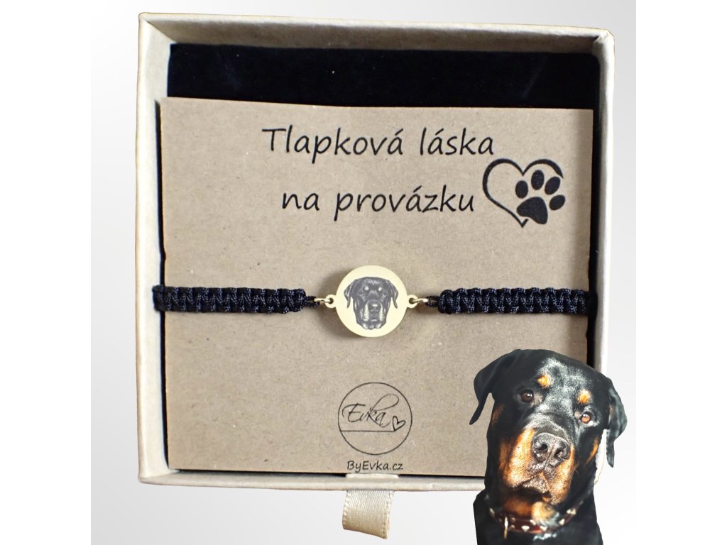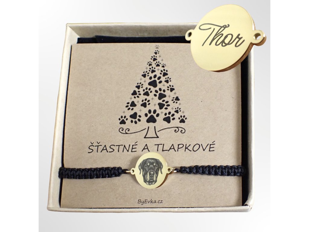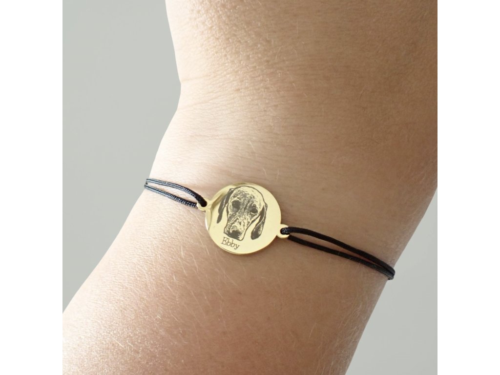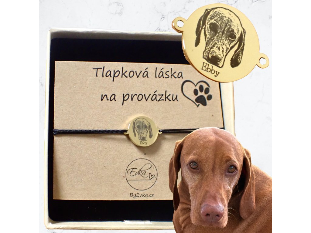 Náramek s gravírovaným portrétem hlavy domácího mazlíčka (např. pes/kočka, ...) - zlaté kolečko II.