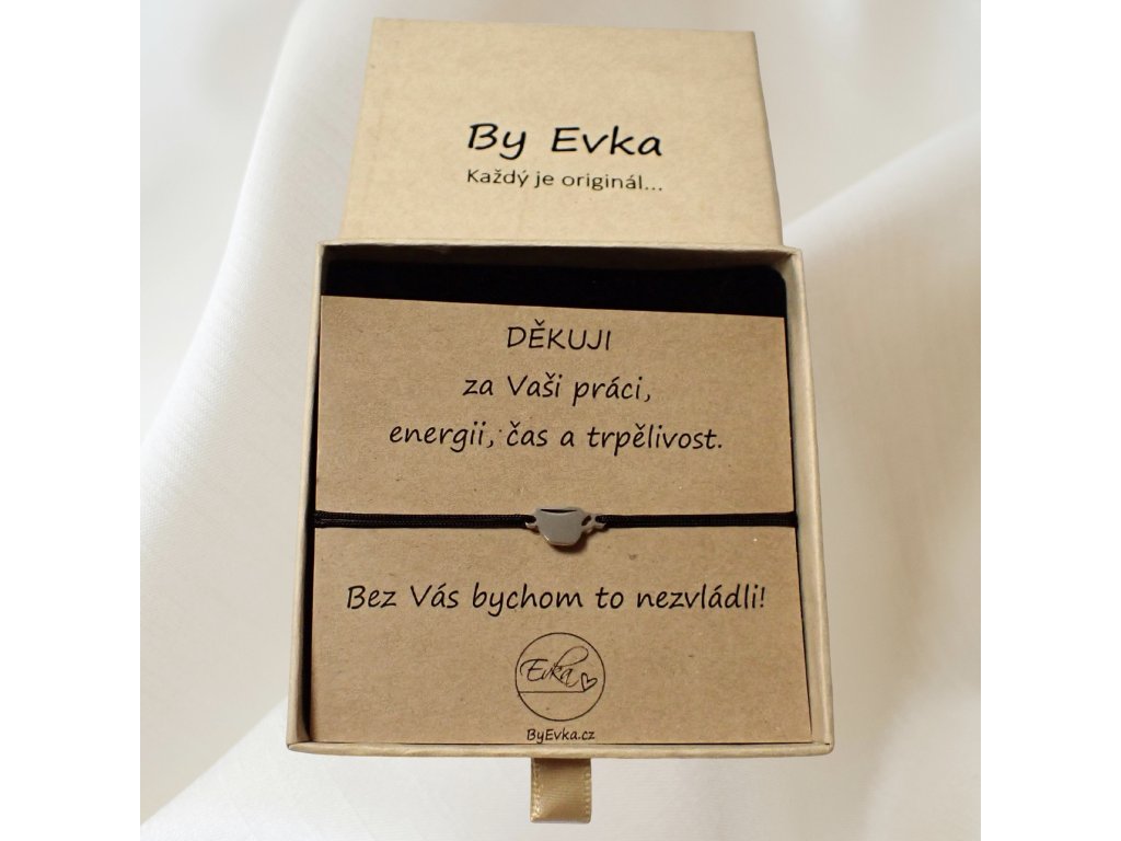Šňůrkový nebo macrame náramek z chirurgické oceli s čajovým nebo kávovým hrníčkem.