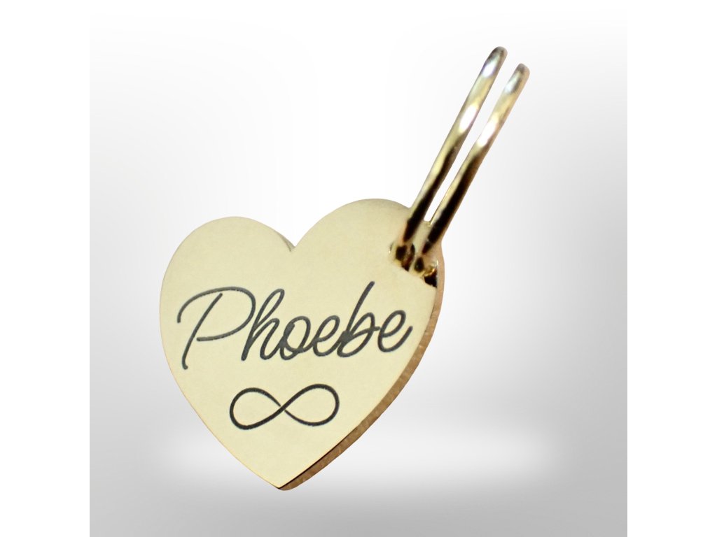 Klíčenka šikmé srdce – zlatá | Gravírovaný portrét domácího mazlíčka