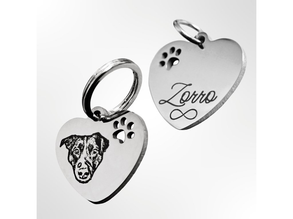 Klíčenka srdce s tlapkou – stříbrná | Gravírovaný portrét domácího mazlíčka