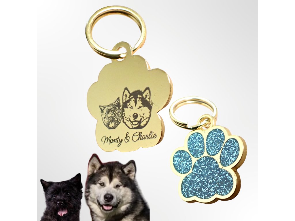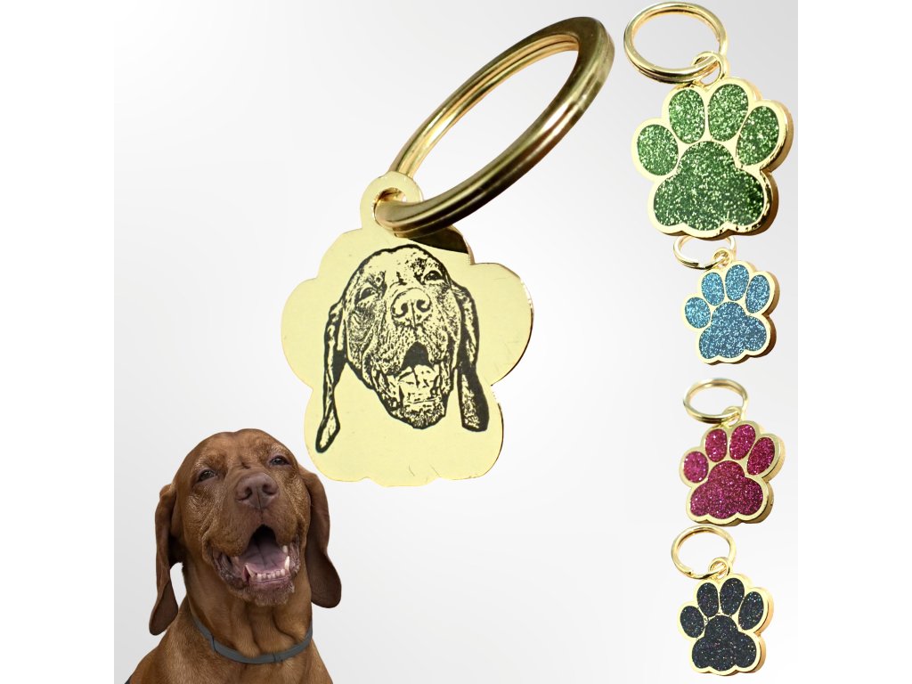 Přívěšek na klíče s portrétem domácího mazlíčka - zlatá tlapka (různé barvy)