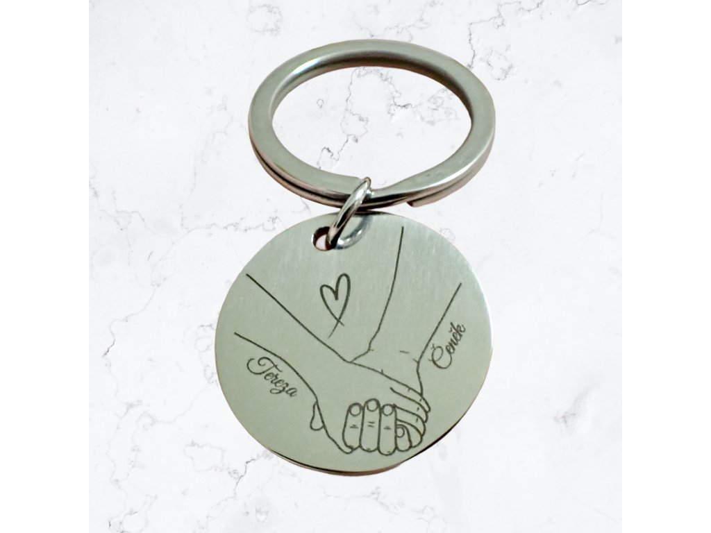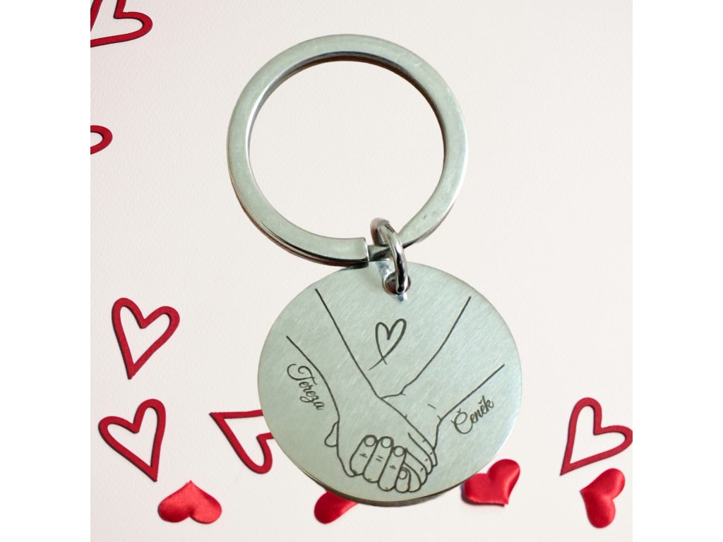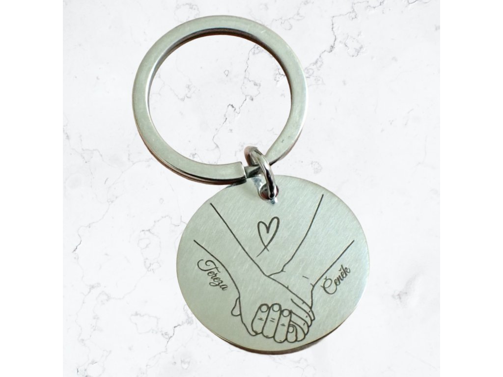 Klíčenka ideální pro partnerku nebo partnera - vyjádřete svou lásku tímto gravírovaným přívěskem se spojenými dlaněmi a jmény partnerů