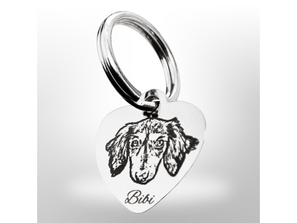 Klíčenka srdce – stříbrná | Gravírovaný portrét domácího mazlíčka