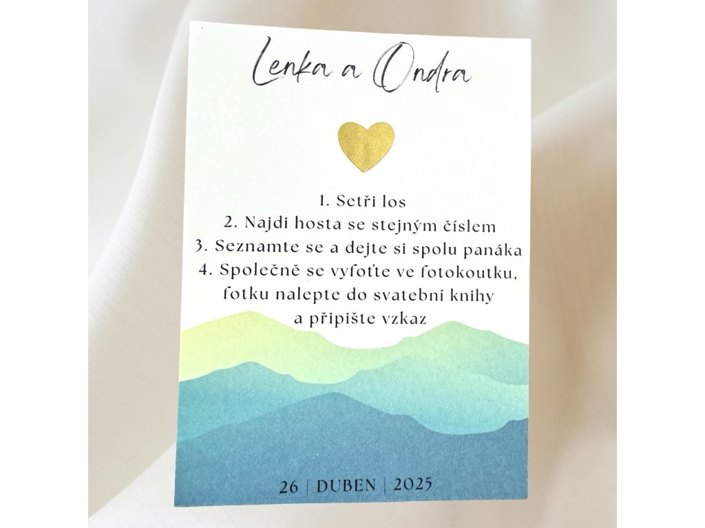 Svatební stírací los - zlaté srdíčko (kopce)