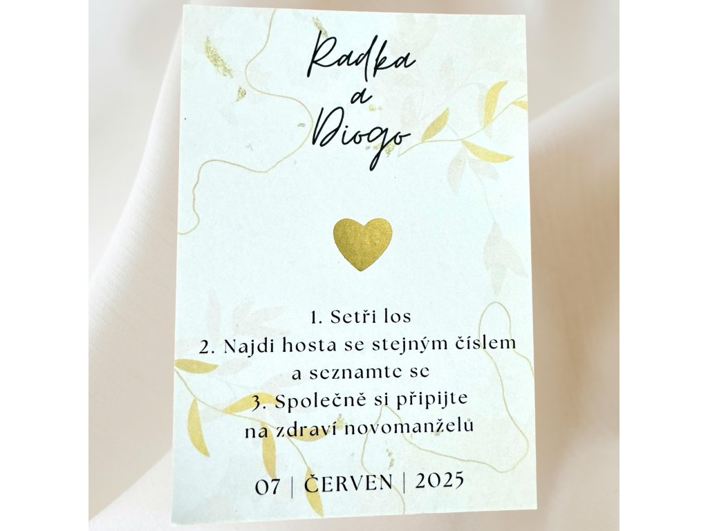 U těchto losů bude vše vytištěno dle Vašich požadavků - je tedy možno přidat jména, datum svatby/oslavy a upravit úkoly.