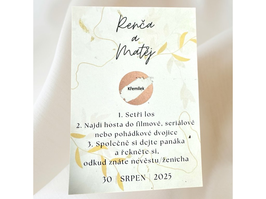 Stírací svatební losy jsou svatební hrou, která slouží nejen k zabavení hostů na svatbě.
