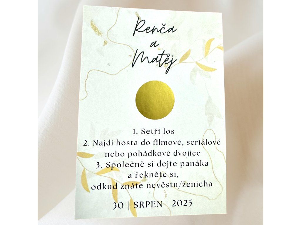 Stírací svatební losy jsou svatební hrou, která slouží nejen k zabavení hostů na svatbě.