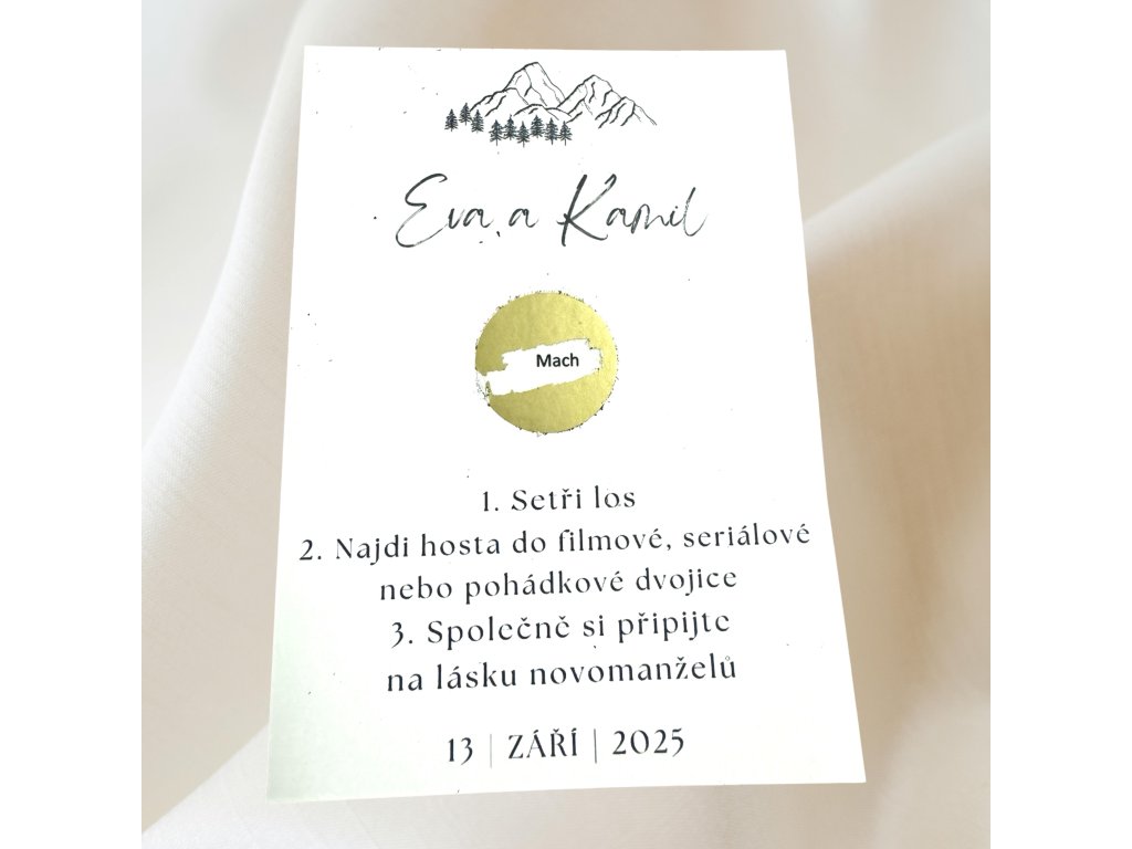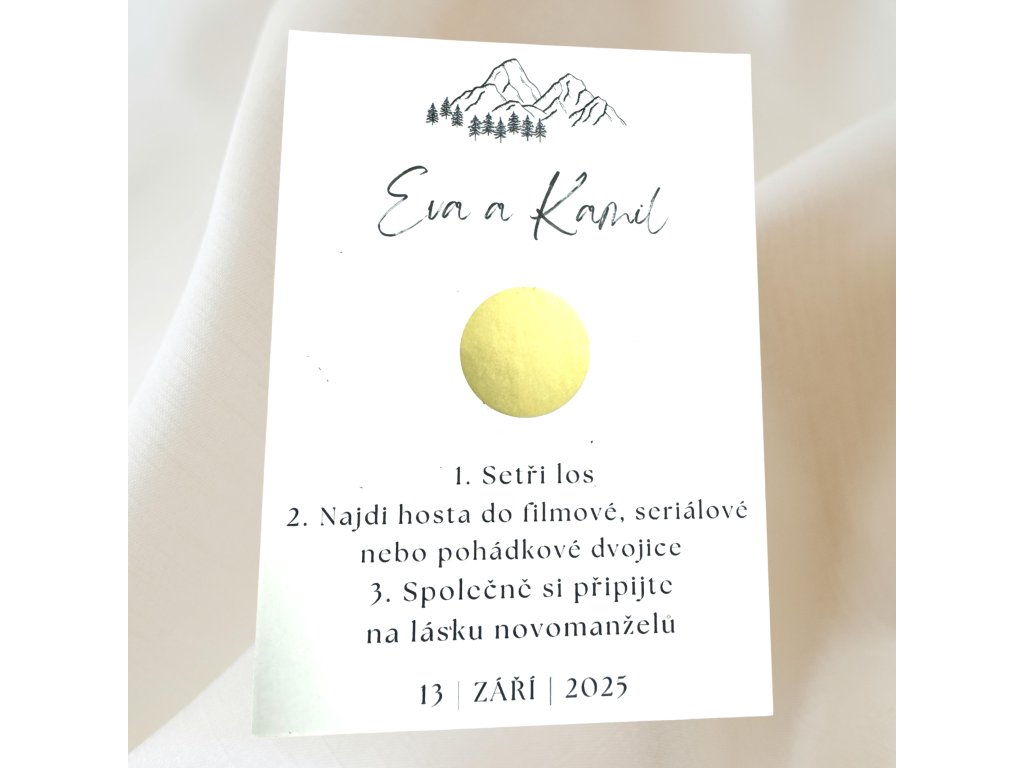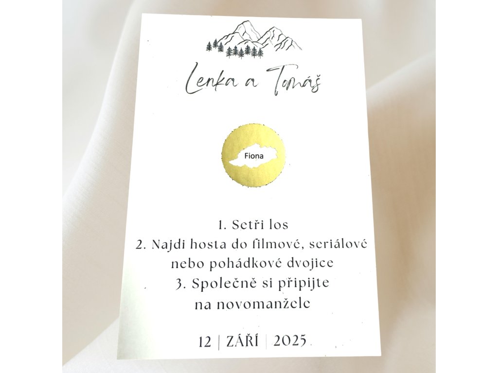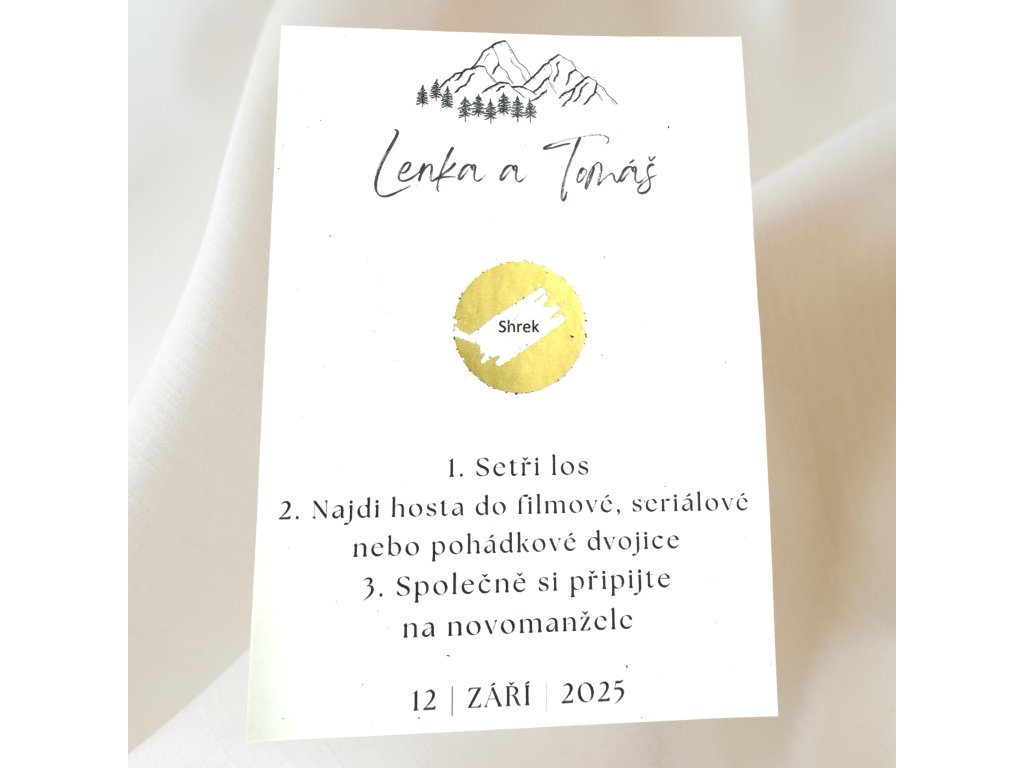 Svatební stírací los - zlaté kolečko - filmové postavy (hory)