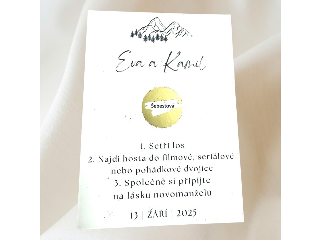 U těchto losů bude vše vytištěno dle Vašich požadavků - je tedy možno přidat jména, datum svatby/oslavy a upravit úkoly.