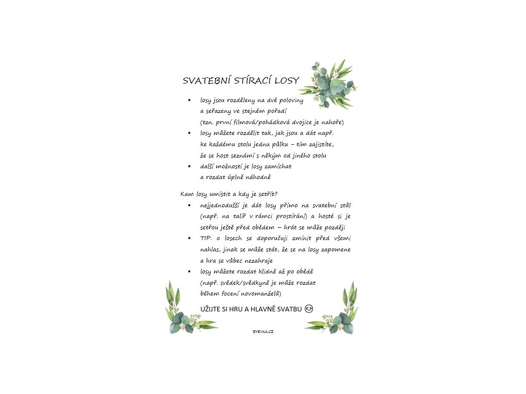 Stírací svatební losy jsou svatební hrou, která slouží nejen k zabavení hostů na svatbě.