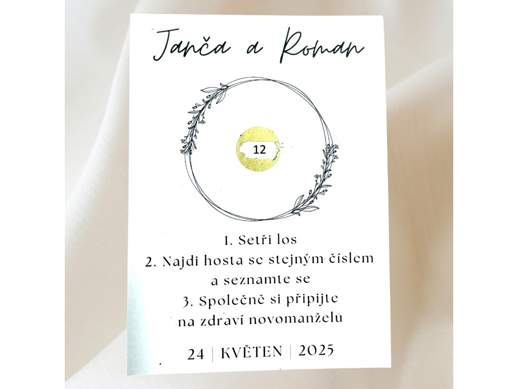 U těchto losů bude vše vytištěno dle Vašich požadavků - je tedy možno přidat jména, datum svatby/oslavy a upravit úkoly.