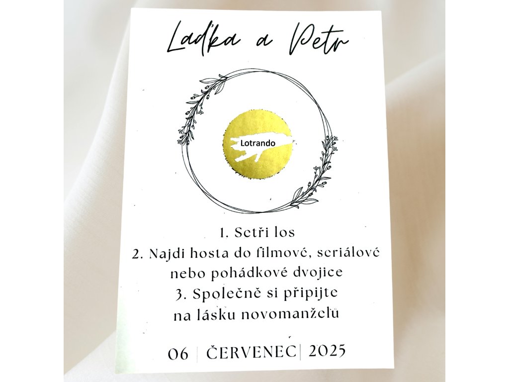 U těchto losů bude vše vytištěno dle Vašich požadavků - je tedy možno přidat jména, datum svatby/oslavy a upravit úkoly.