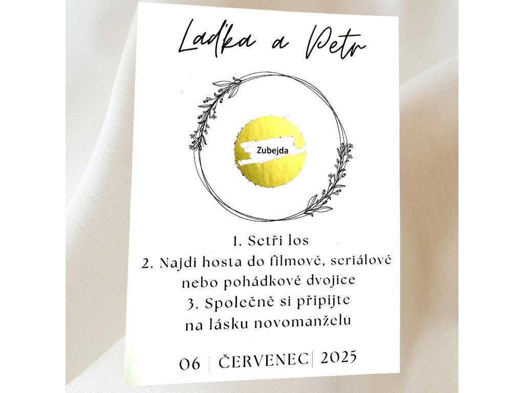 Stírací svatební losy jsou svatební hrou, která slouží nejen k zabavení hostů na svatbě.