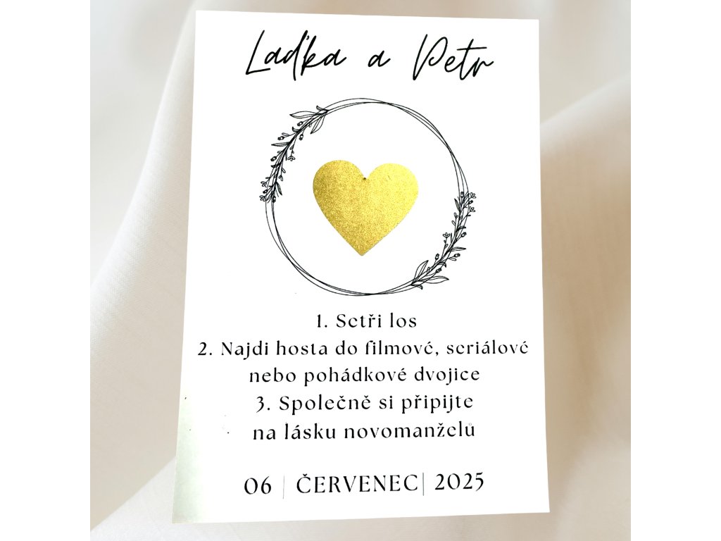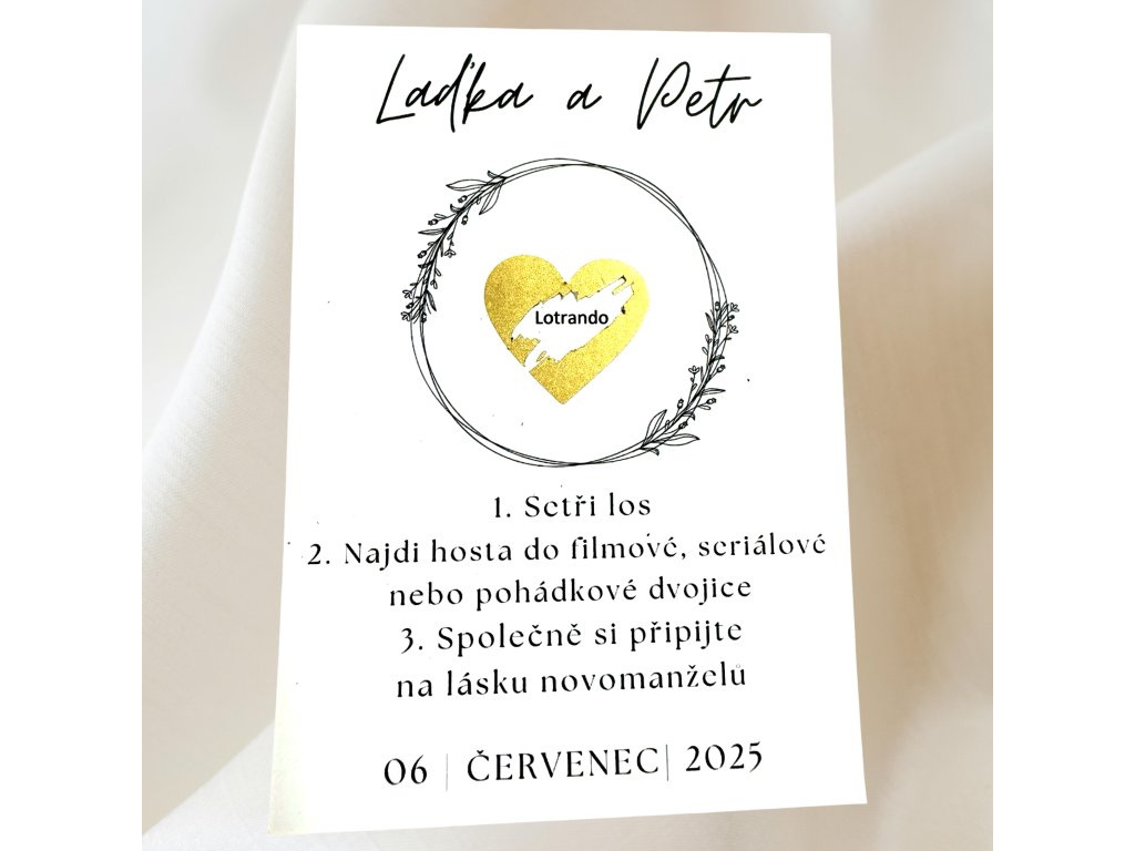 U těchto losů bude vše vytištěno dle Vašich požadavků - je tedy možno přidat jména, datum svatby/oslavy a upravit úkoly.