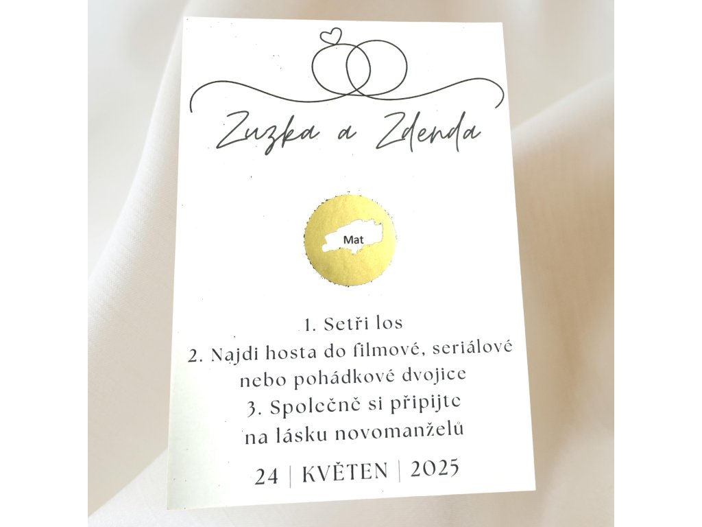 U těchto losů bude vše vytištěno dle Vašich požadavků - je tedy možno přidat jména, datum svatby/oslavy a upravit úkoly.
