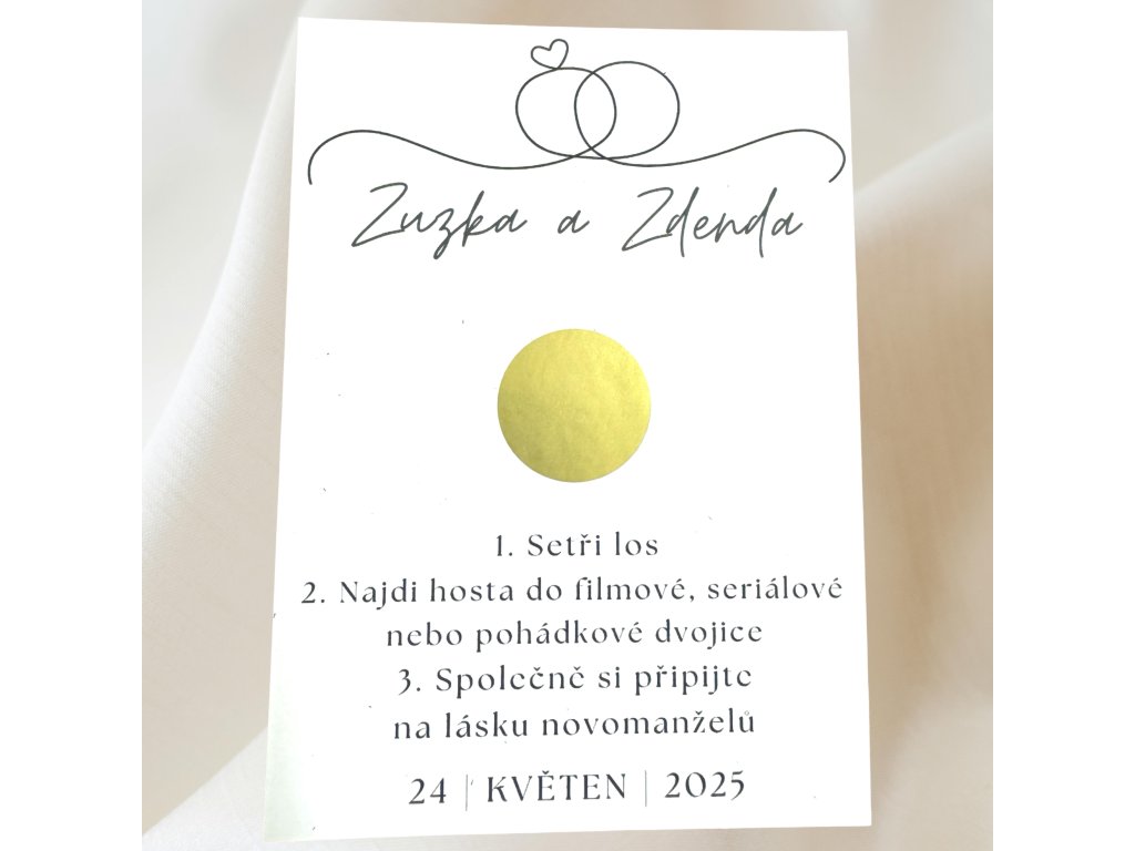 Svatební stírací los - zlaté kolečko - filmové postavy (prstýnky)
