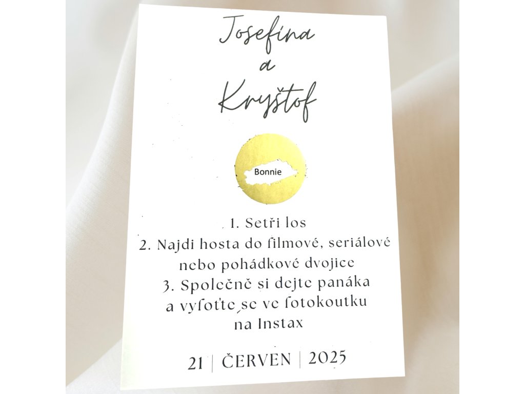 U těchto losů bude vše vytištěno dle Vašich požadavků - je tedy možno přidat jména, datum svatby/oslavy a upravit úkoly.