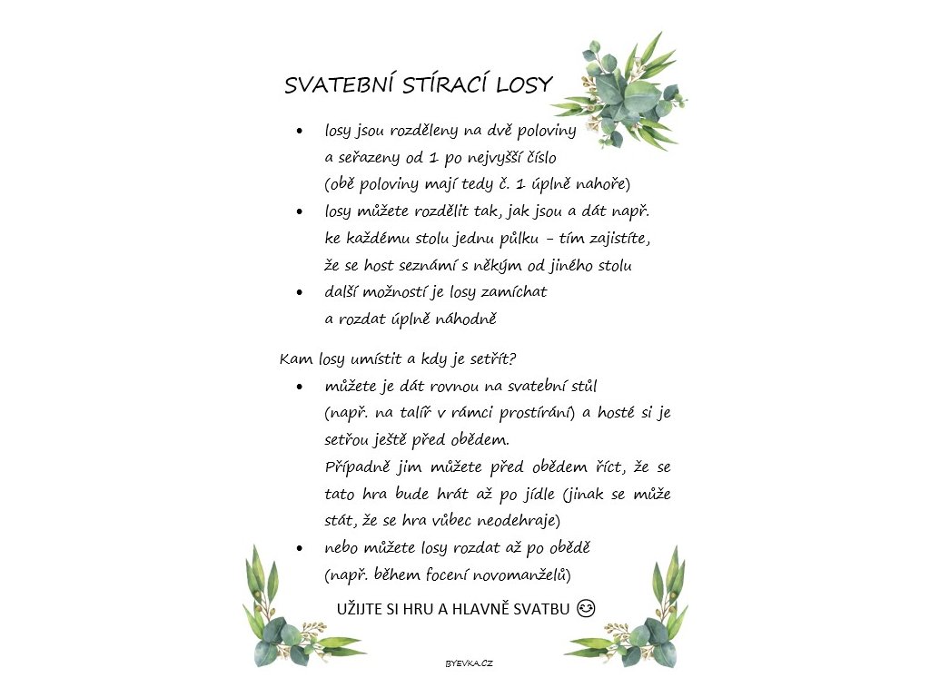 U těchto losů bude vše vytištěno dle Vašich požadavků - je tedy možno přidat jména, datum svatby/oslavy a upravit úkoly.