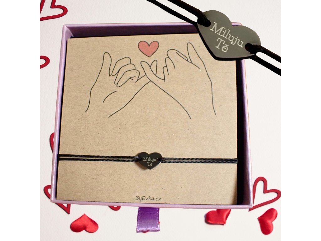 ''Miluju Tě'' - gravírované srdíčko černé - náramek