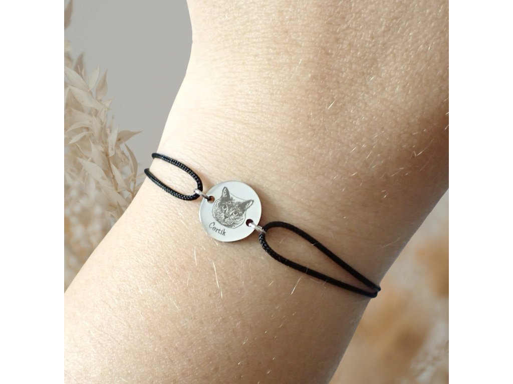 Náramek s gravírovaným portrétem domácího mazlíčka (např. pes/kočka, ...) - stříbrné kolečko