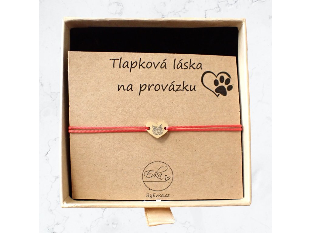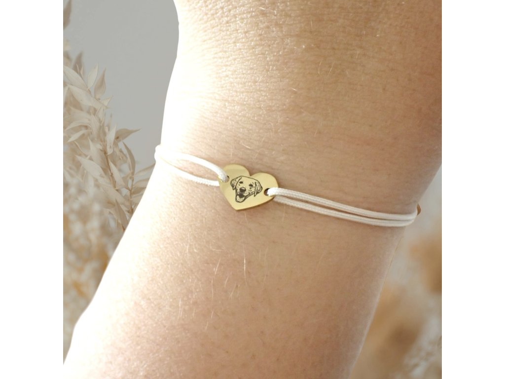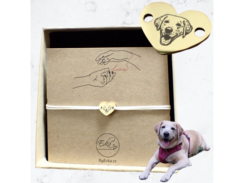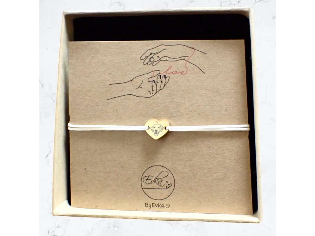 Náramek s gravírovaným portrétem domácího mazlíčka (např. pes/kočka,...) - zlaté srdíčko