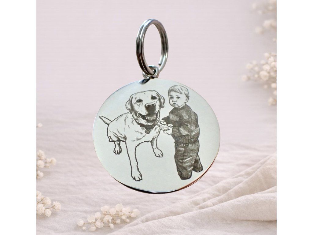 Originální a osobní klíčenka. Tento jedinečný kousek je vyráběn na míru a umožňuje gravírování portrétu, fotky či textu čehokoliv - vašeho domácího mazlíčka, dětí, rodiny, ...