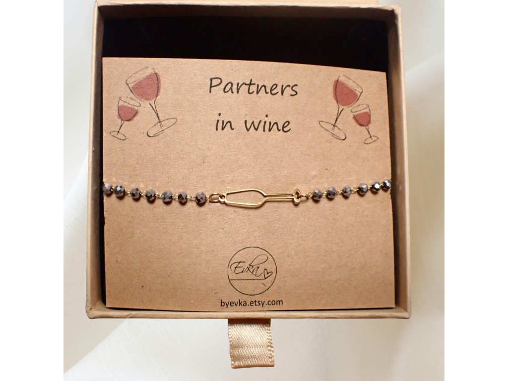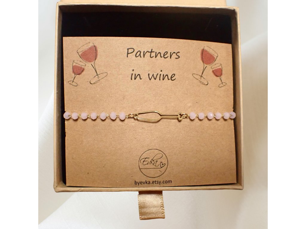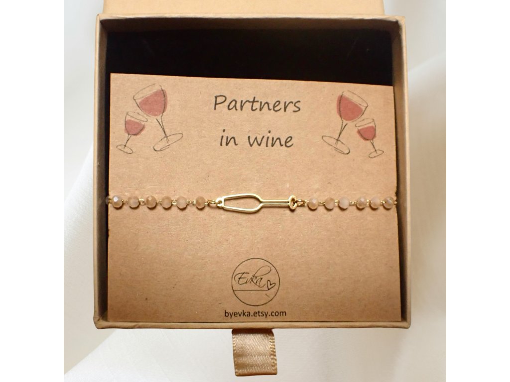 🥂 Prosecco – Champagne (vínová/sektová) zlatá sklenička – řetízkovo-korálkový náramek🥂