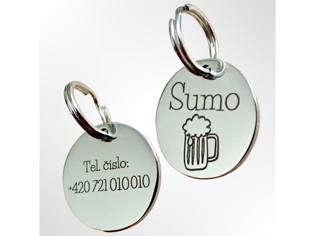 Psí známka kulatá s libovolným symbolem (i bez) - stříbrná