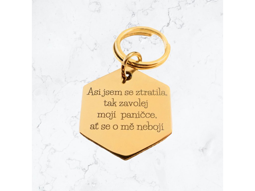 Psí známka šestiúhelník – zlatá (nerezová-chirurgická ocel)