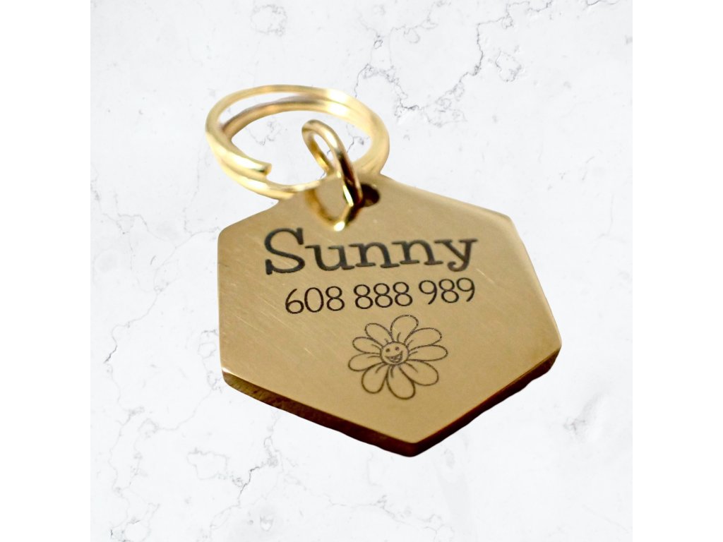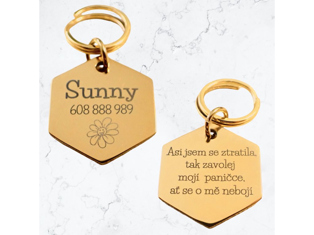 Psí známka šestiúhelník s květinou, bez květinky nebo s jiným symbolem - zlatá