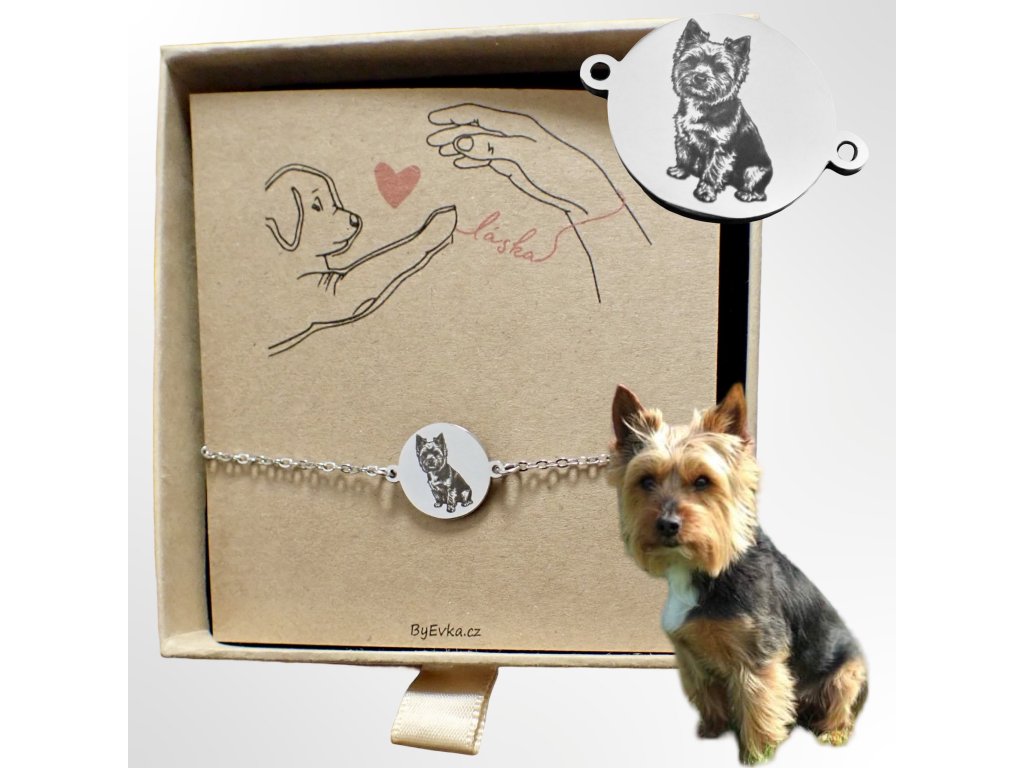Řetízkový náramek s gravírovanou fotkou Vašich domácích mazlíčků – památka na celý život