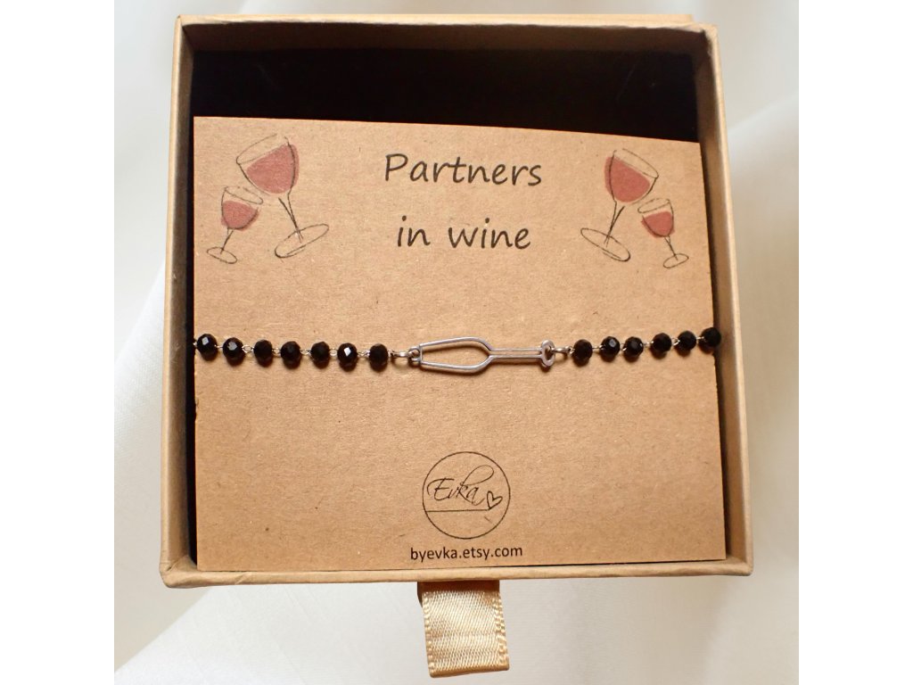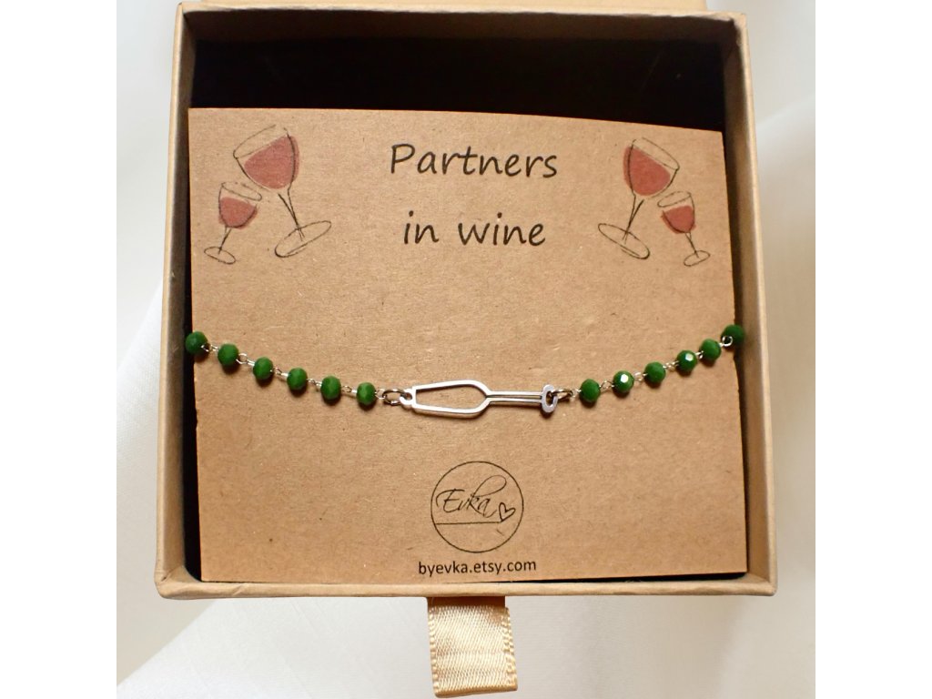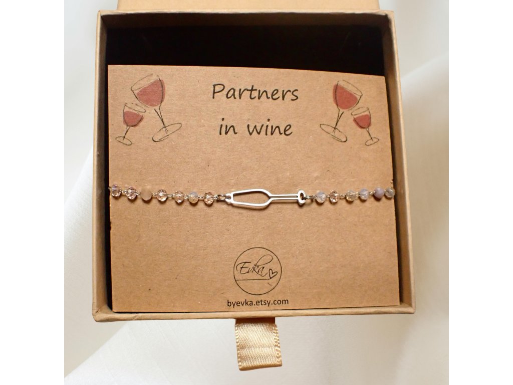🥂 Prosecco – Champagne (vínová/sektová) stříbrná sklenička – řetízkovo-korálkový náramek🥂