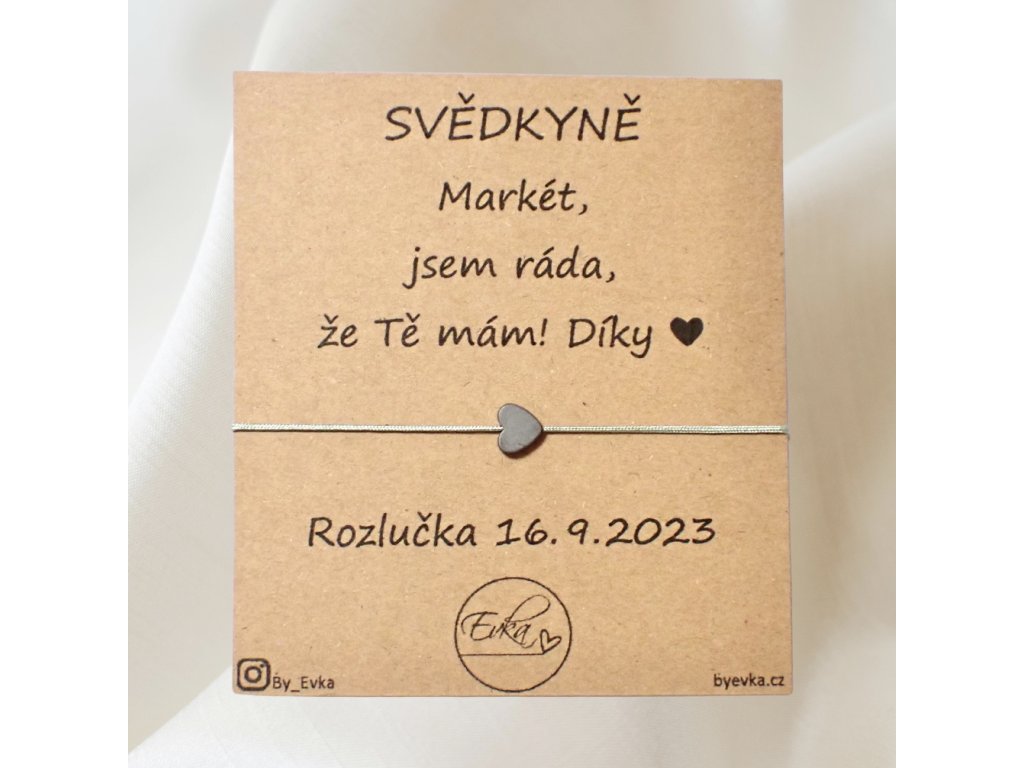 Dárková kartička s vlastním textem (velikost viz foto) + náramek s hematitovým srdíčkem.