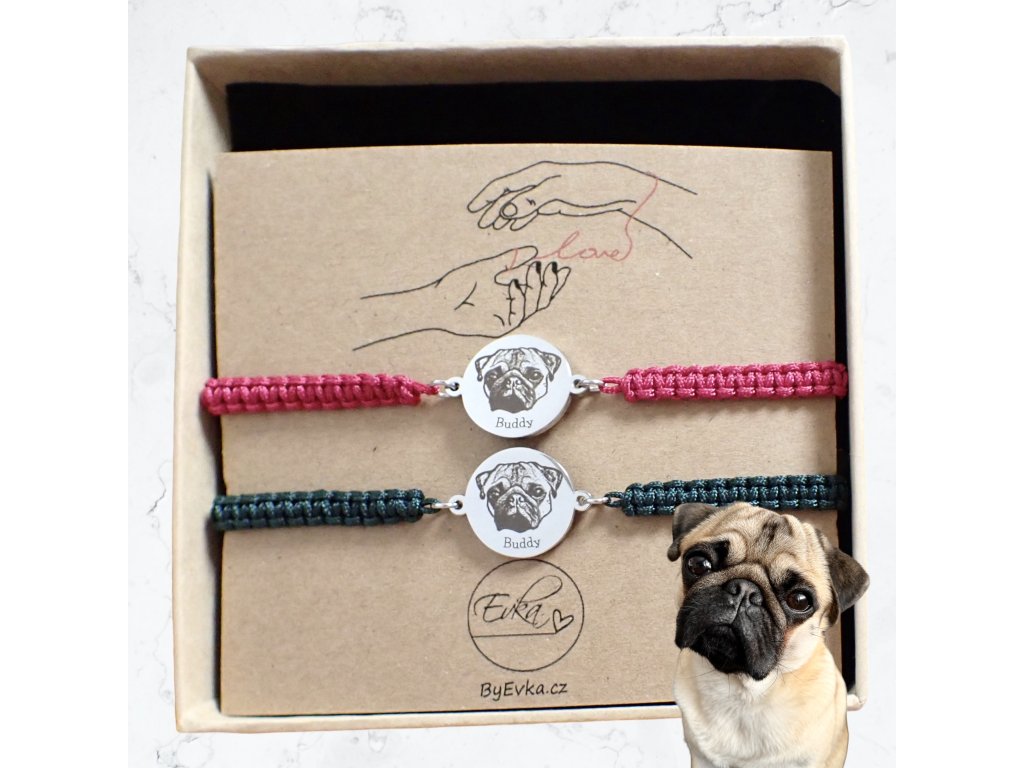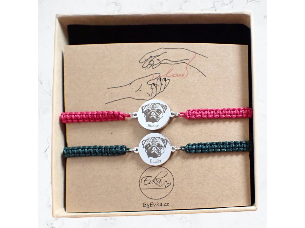 SET: Náramky s gravírovaným portrétem domácího mazlíčka (např. pes/kočka, ...) - kolečko