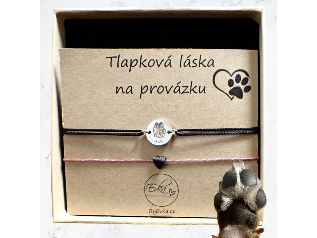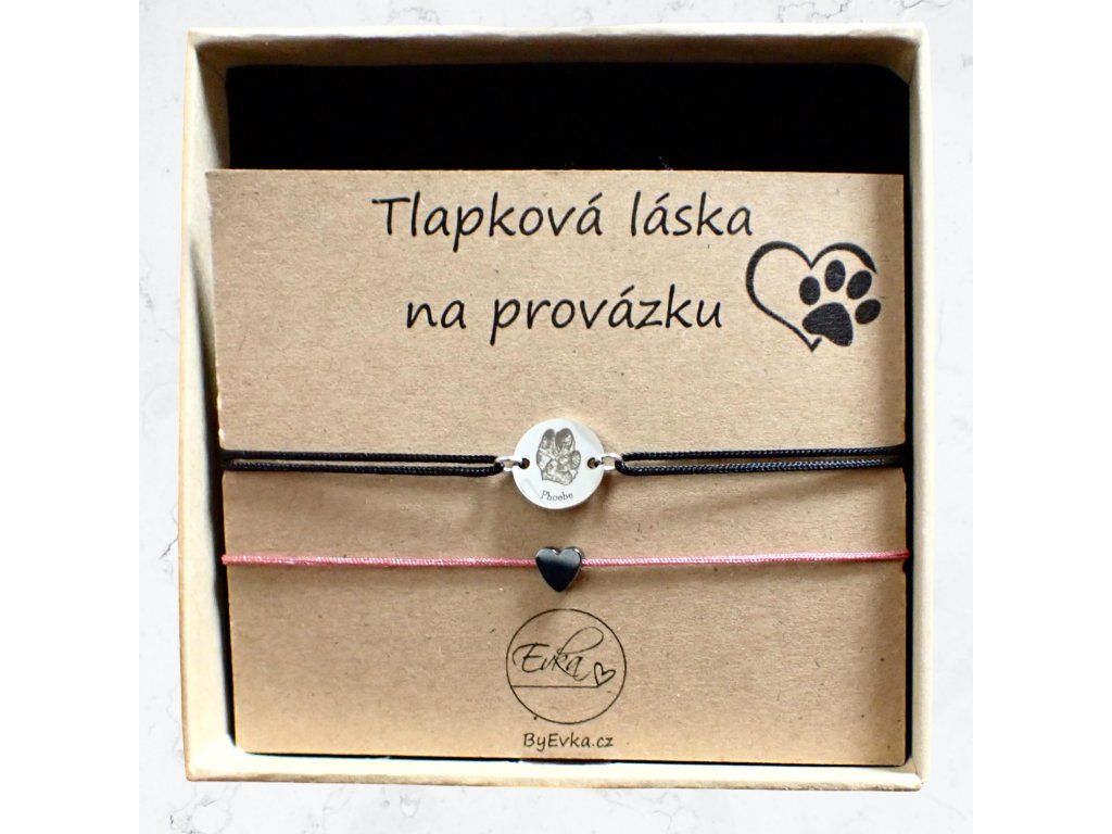 SET: Tlapka vašeho domácího mazlíčka + hematitové srdíčko (např. pes/kočka/králík,...) - gravírování - kulatý mezidíl stříbrný - náramky