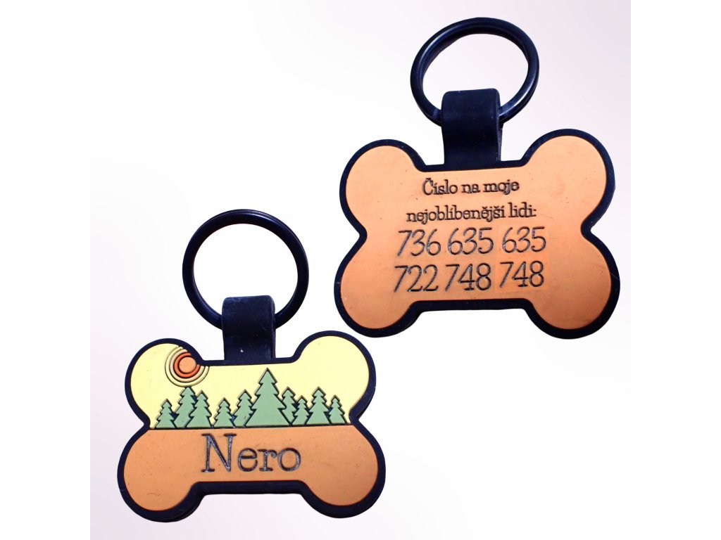 Silikonová psí známka KOST (lesy a slunce, oranžová) - oboustranná