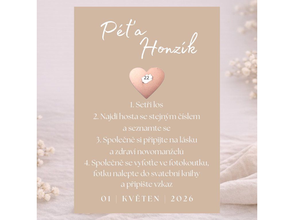 U těchto losů bude vše vytištěno dle Vašich požadavků - je tedy možno přidat jména, datum svatby/oslavy a upravit úkoly.