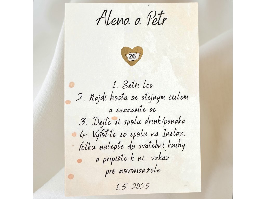 U těchto losů bude vše vytištěno dle Vašich požadavků - je tedy možno přidat jména, datum svatby/oslavy a upravit úkoly.