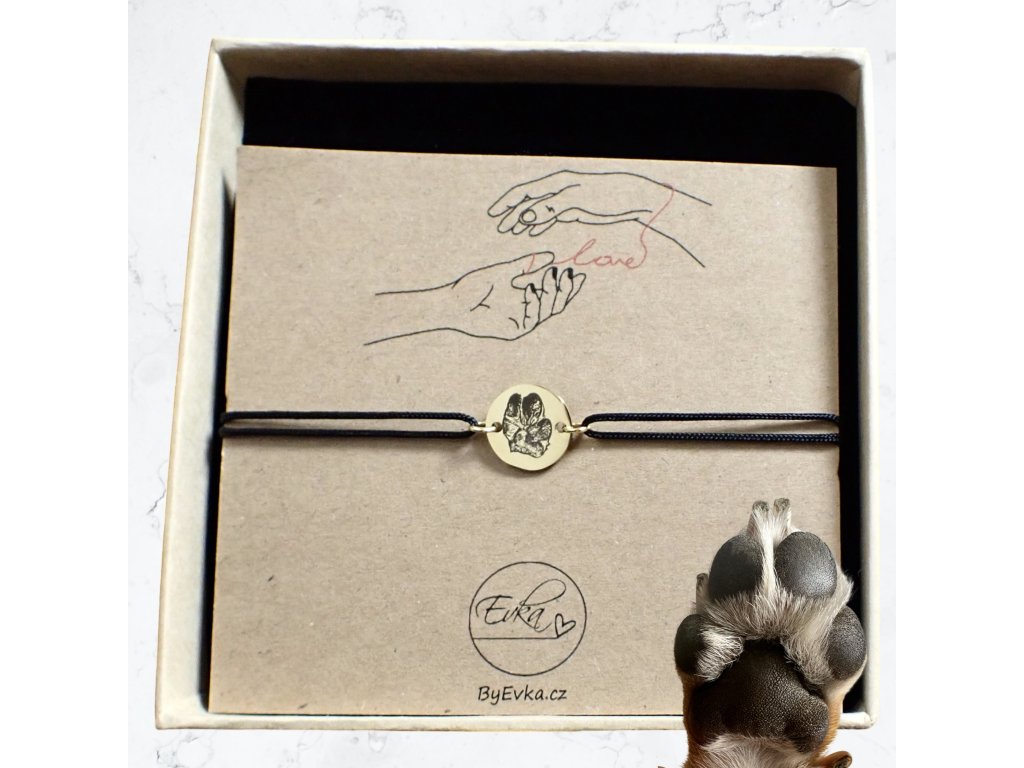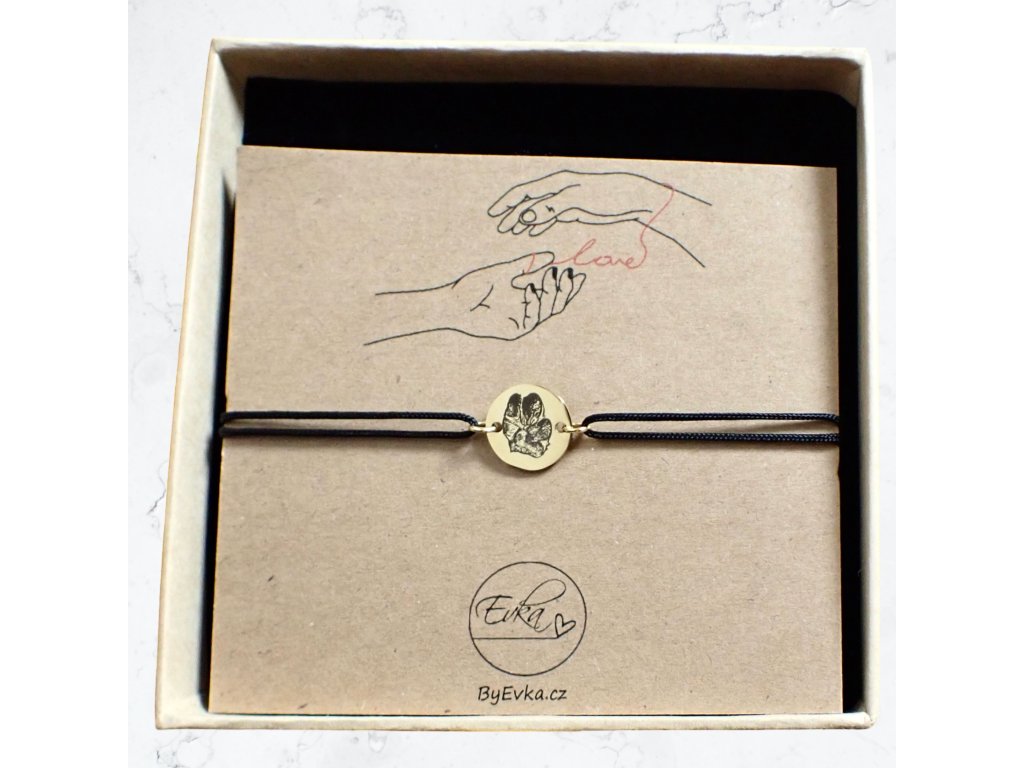 Tlapka vašeho domácího mazlíčka (např. pes/kočka/králík,...) - gravírování - kulatý mezidíl zlatý - náramek
