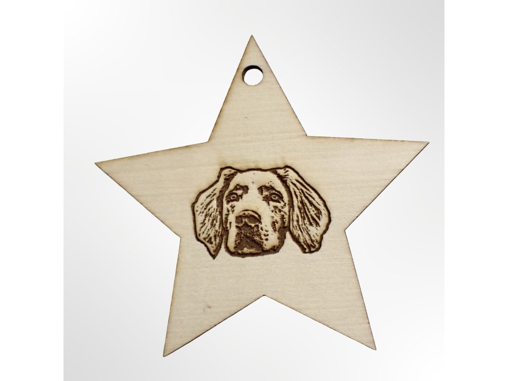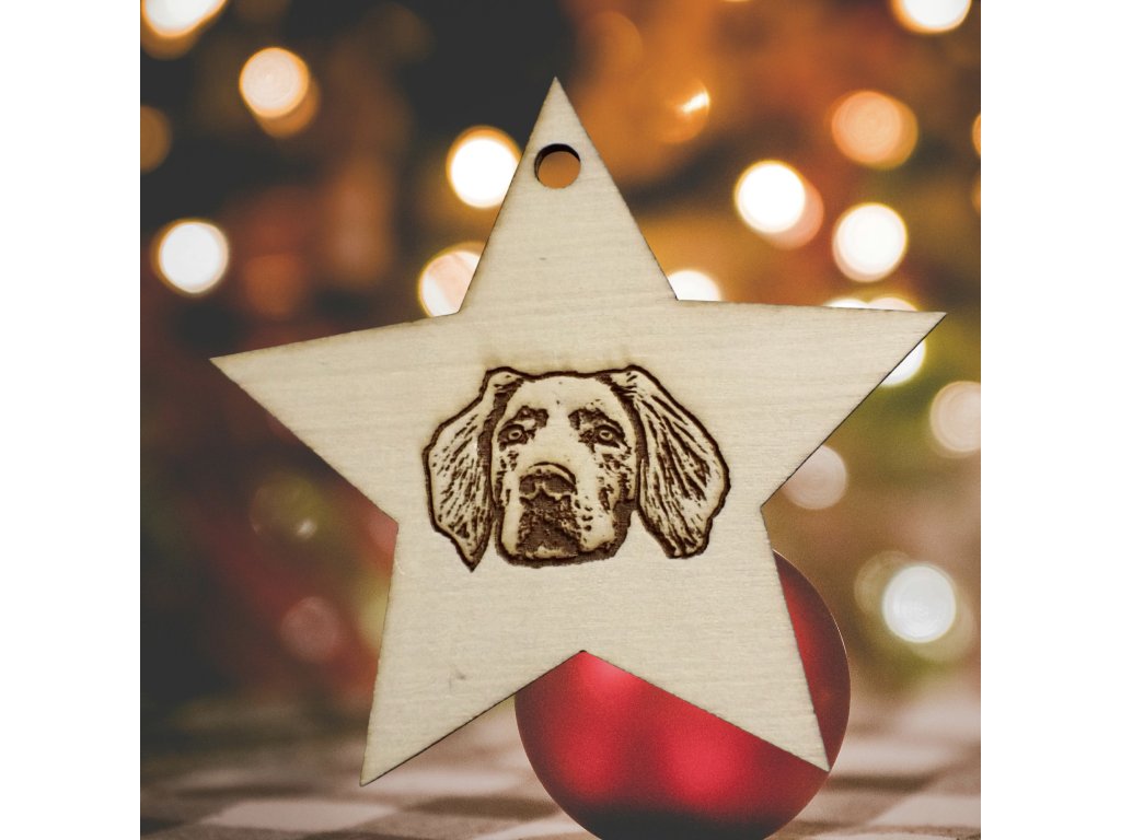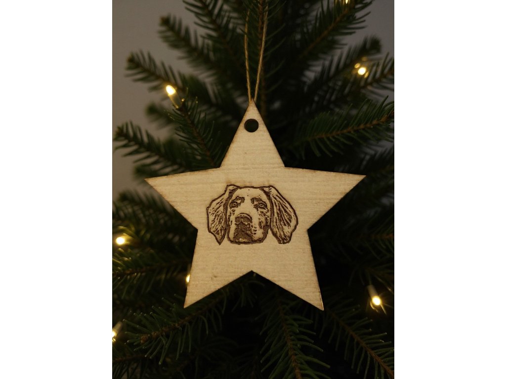 Dřevěná vánoční ozdoba - hvězda s portrétem vašeho zvířete
